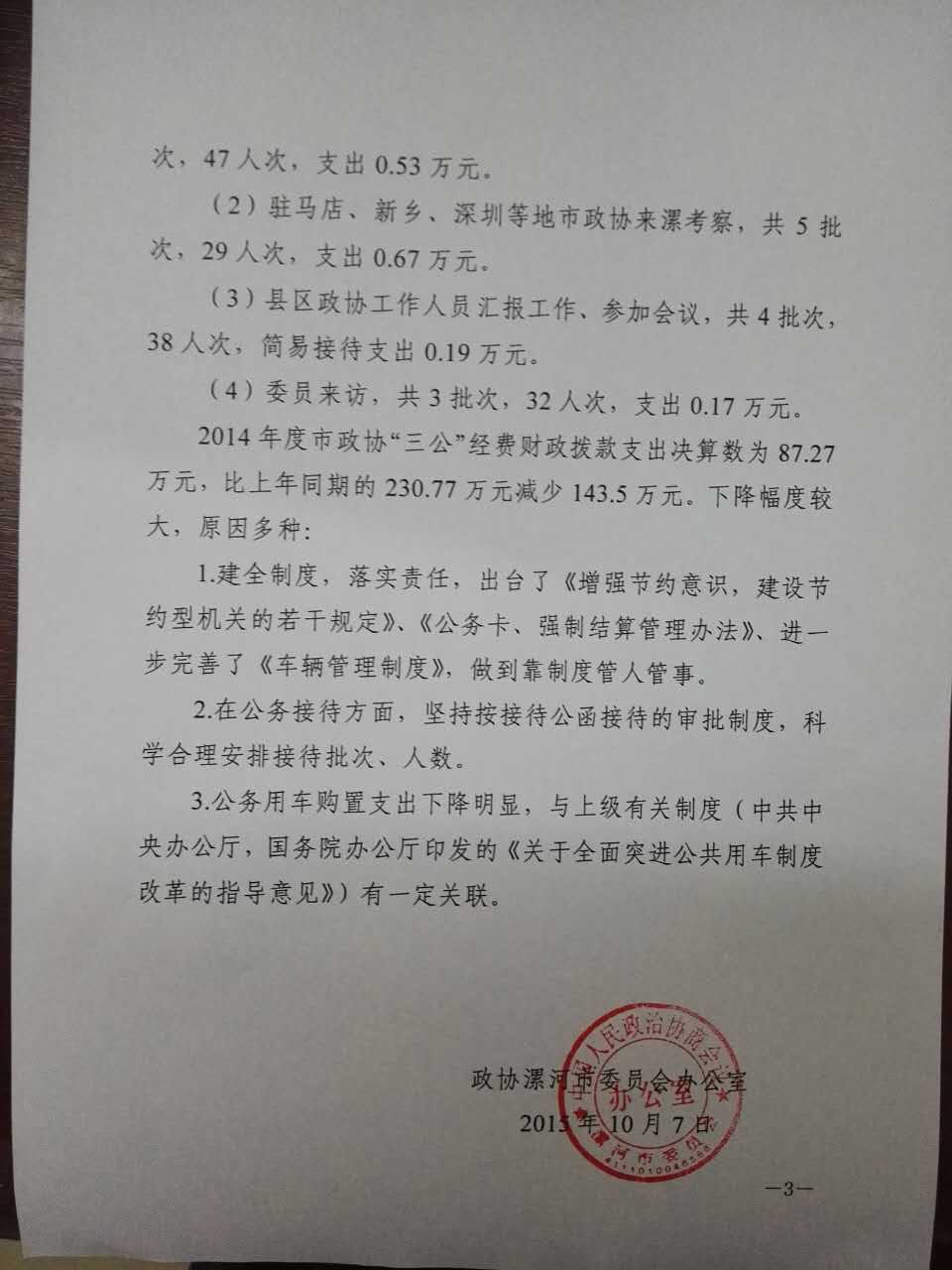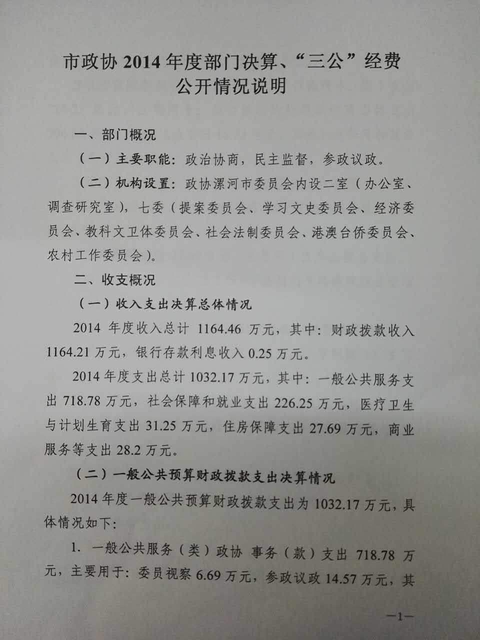 市政协2014年度部门决算、“三公”经费公开情况说明