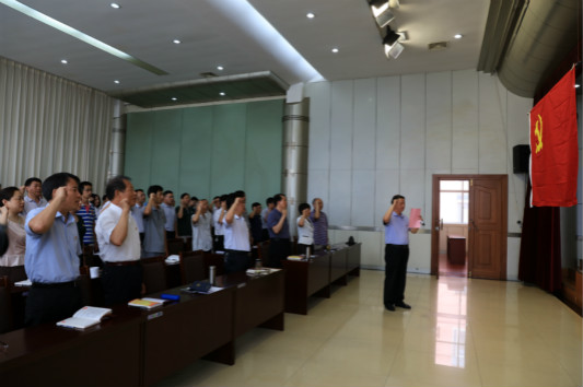 活动中,机关全体党员齐聚一堂,在党旗下庄严宣誓,重温了入党誓词。